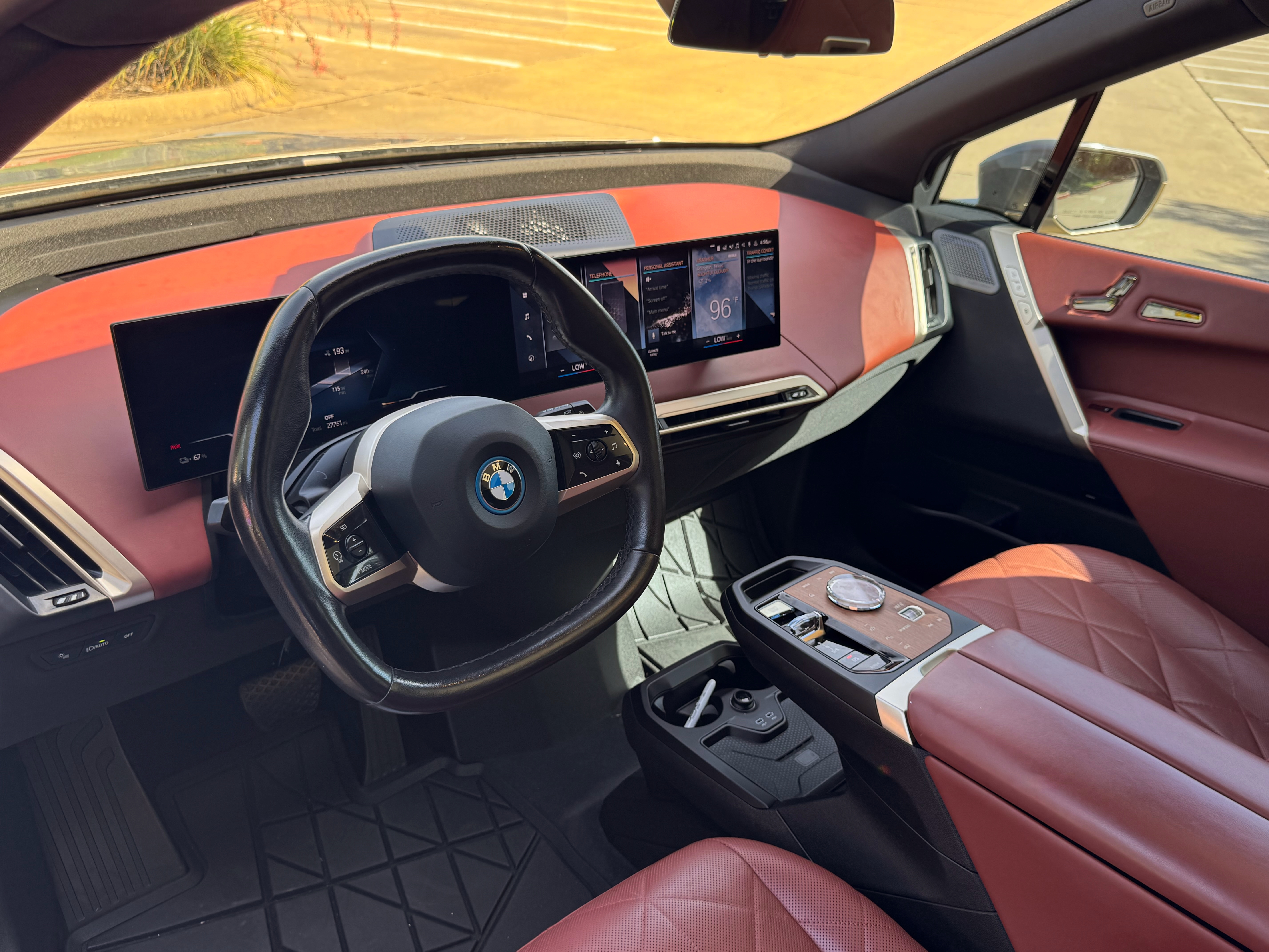 The back of the IX looks much better, resembling what you’d see on an X5 M. It even has a bumper with diffuser cutouts that look ready for an exhaust. My IX was specced with Oxide Grey, which paired very well with the black badges, blue ring around the BMW logos and the blue M brake calipers. The IX’s design is smooth enough to give away its electric DNA, but sharp enough to remind you it shares that DNA with its M car siblings. Or maybe distant cousins. I think aside from the front, it’s a fairly inoffensive design that won’t even turn as many heads as BMW’s hybrid performance SUV, the XM.